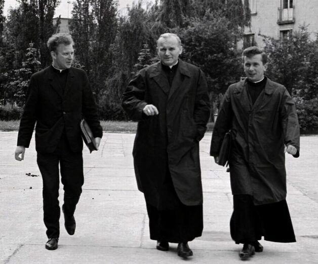 Prof. Karol Wojtyła w towarzystwie ks. Tadeusza Stycznia (z prawej)